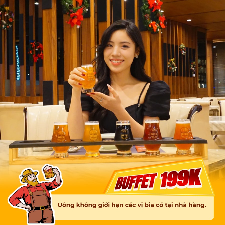Buffet 199k: uông không giới hạn các vị bia có tại nhà hàng.