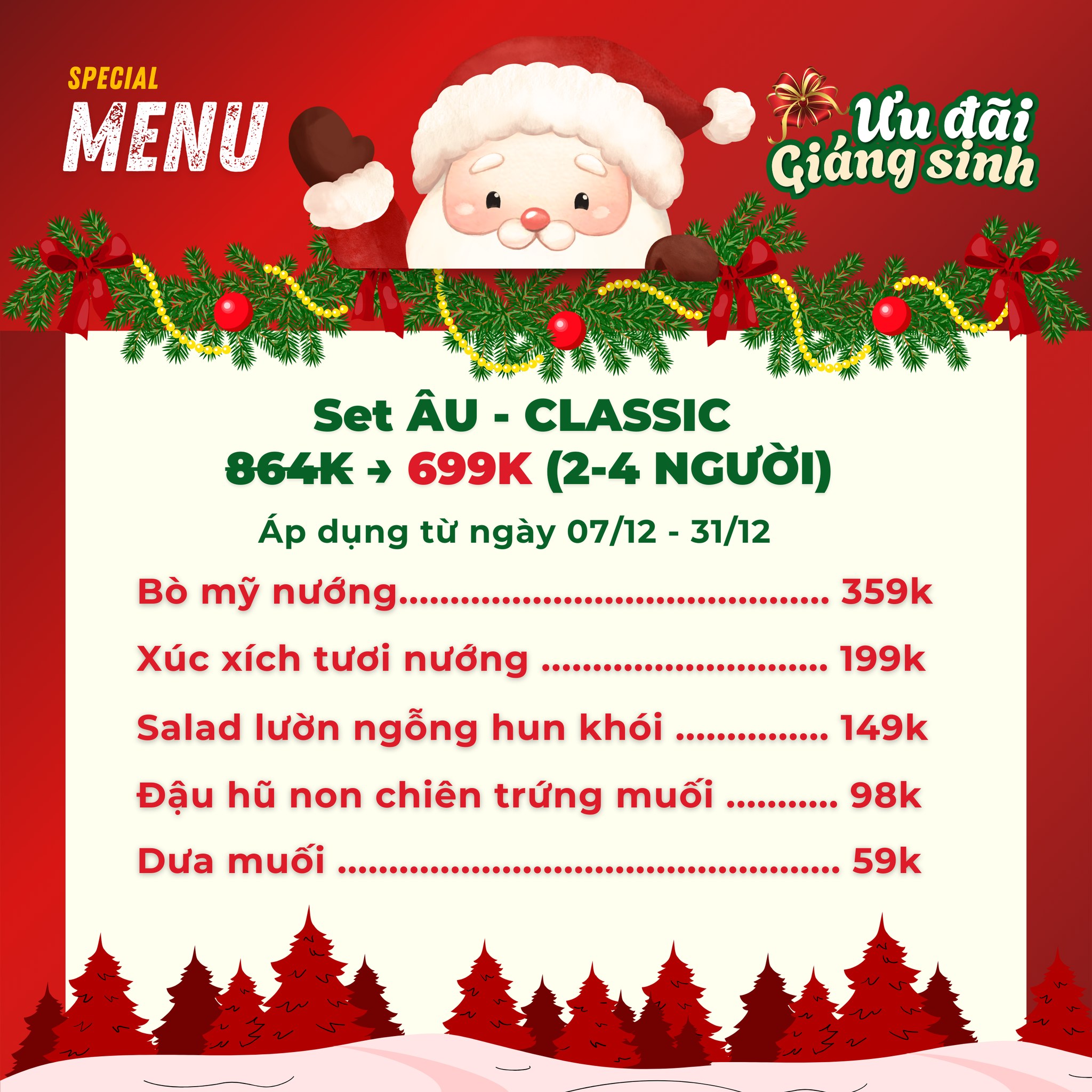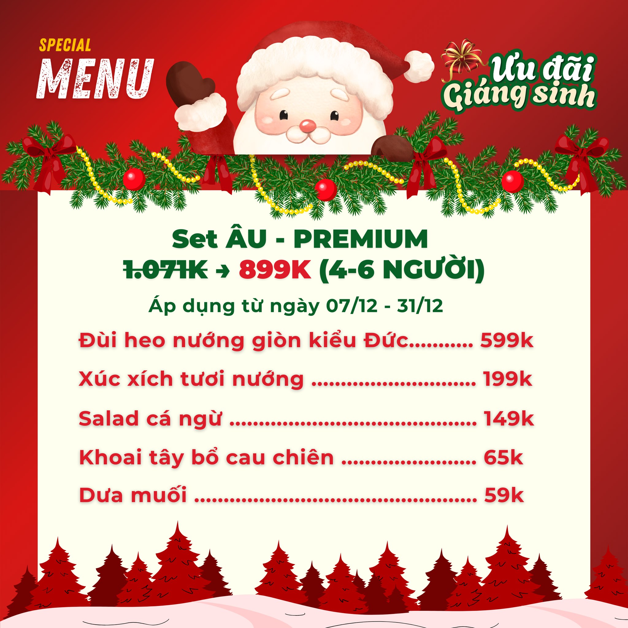 Thực đơn được thiết kế riêng cho Noel, tiệc cuối năm