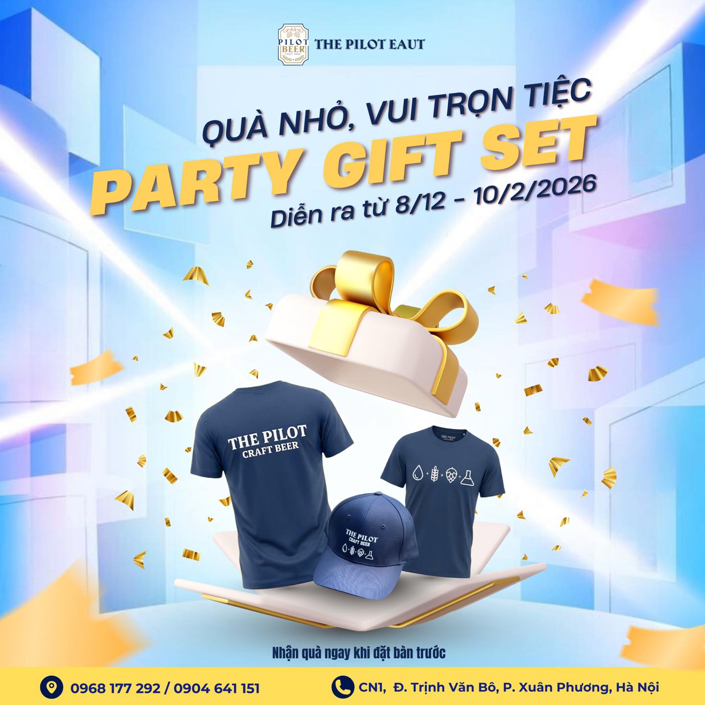 - Địa chỉ: Nhà hàng The Pilot EAUT- Đường CN1, Trịnh Văn Bô, Xuân Phương, TP. Hà Nội