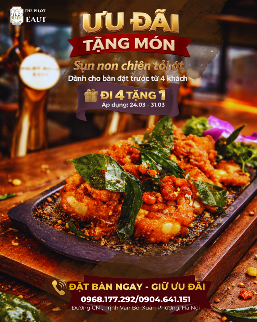 🎉 Thành Viên Thân Thiết – Ưu Đãi Tháng 7 Giảm Tới 20% Tổng Bill! 🍻 Tháng 7 này, Nhà hàng The Pilot EAUT tung ưu đãi siêu hấp dẫn